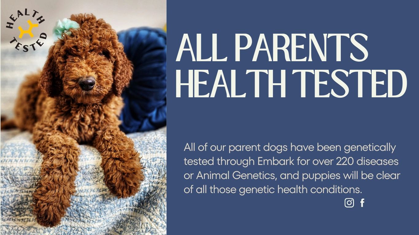 All of our parent dogs have been genetically tested through Embark for over 220 diseases or Animal Genetics and cleared of all those genetic health conditions.