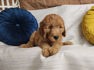 This litter is so adorable and fun! You won't want to miss out on these cuties! Below you will see each puppy available. The ones reserved will be at the very bottom below the videos. Yes! We have videos too, just scroll pst the boys to watch. IF you are interested in one please reach out, we would be glad to talk
