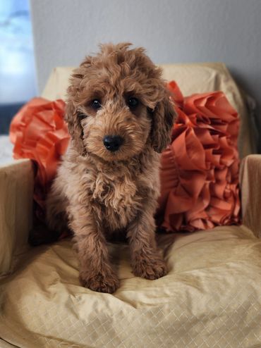 Thank you for your interested in Indy's sweet mini Goldendoodle puppies. You can scroll down to make your selection and see all of her adorable puppies. Give us a call.