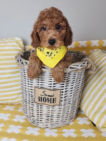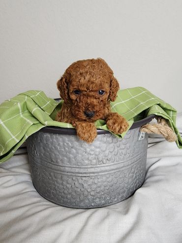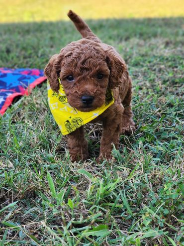 Scroll down to see the cutest mini Goldendoodles around! We have one very beautiful, sweet girl still available! and some pretty cute boys too! Contact us if you would like to make one yours!